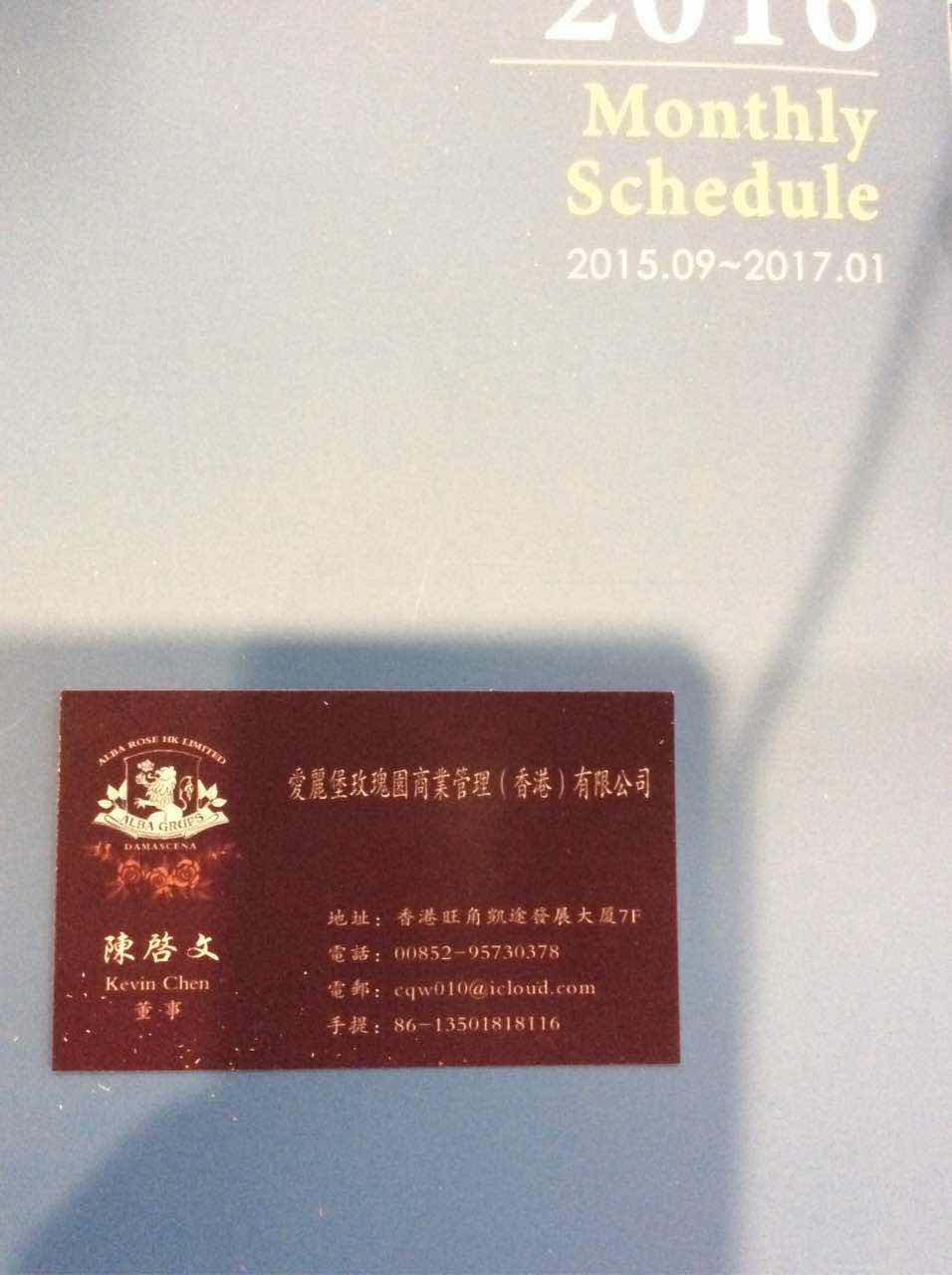 請將我們公司的英文名傳給新的設(shè)計(jì)師:ALBA ROSE HK LIMITED 中文名:愛麗堡玫瑰園商業(yè)管理(香港)有限公司