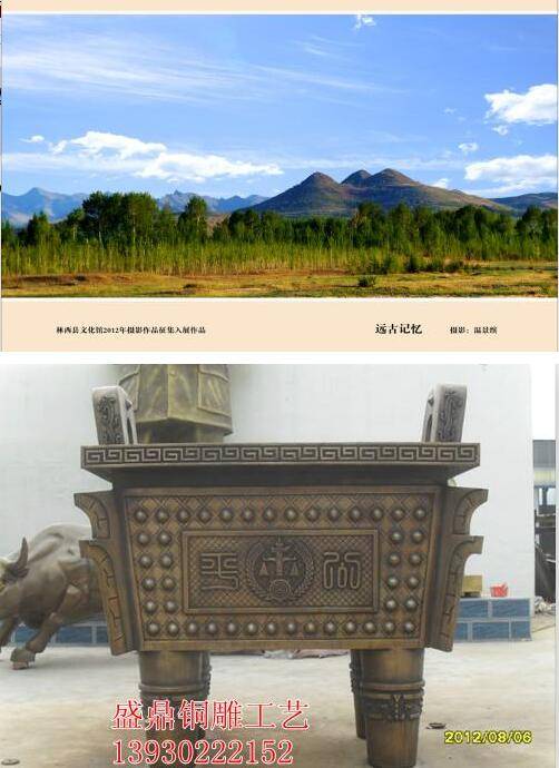 主要視覺元素為 銅鼎或三座山峰 顏色醒目