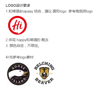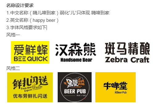中文:嗨兒啤到家,英文:happy beer 設(shè)計要求:圖形+字體設(shè)計 具體設(shè)計要求看參考圖